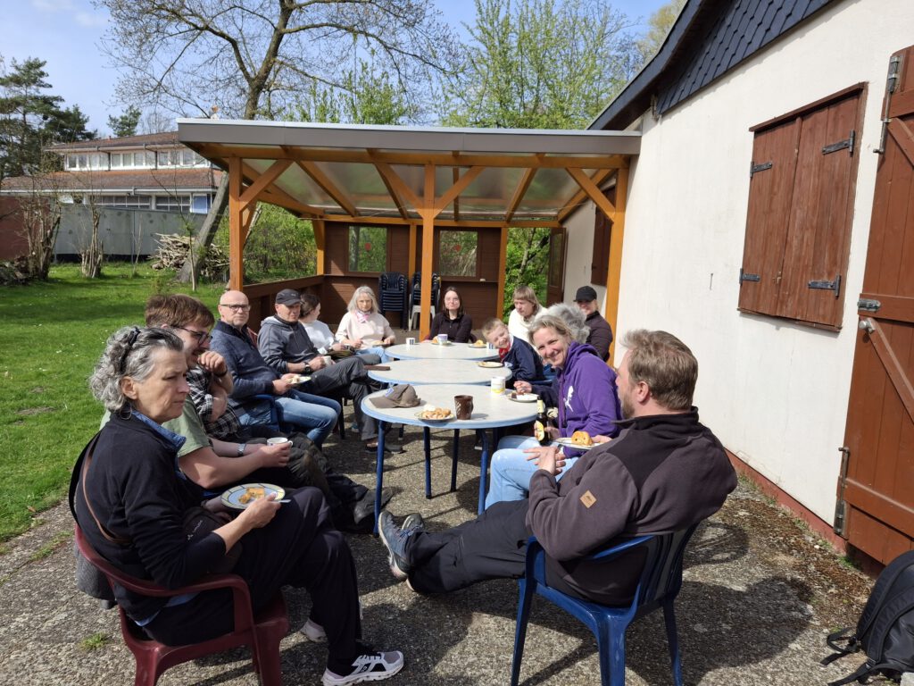 Wir paddelten von Bienenbüttel zum LKC mit Stop in Deutsch Evern. Alle kamen heil und munter an und hatten sich Kaffee und Kuchen verdient. Den teilten wir uns mit den Vereinkamerad*innen, die die Slalomstrecke repariert haben. Und so konnten es sich alle auf der Terrasse gutgehen lassen.